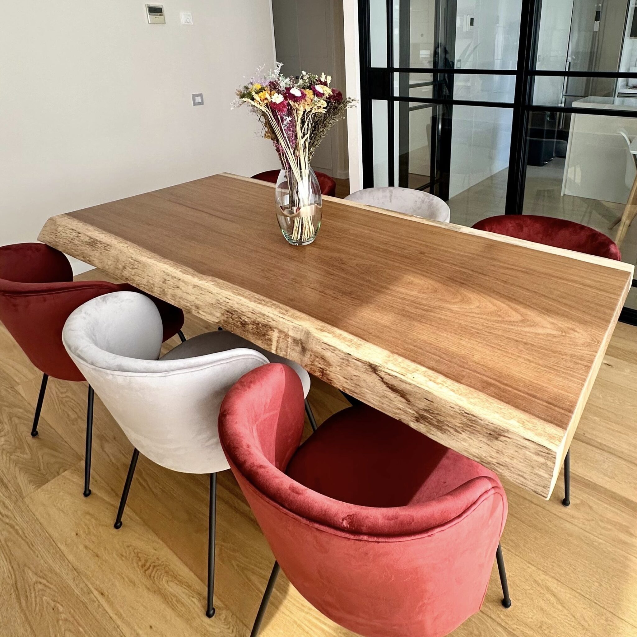 Mesas de comedor de madera natural maciza, elaboradas en una sola pieza, que combinan estilo y diseño para transformar tu espacio.